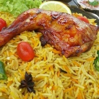 Nasi Arab Kabsa dihidangkan bersama Ayam Golek (potong 8) bersama sos salatha dan sos sweet thai