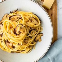 Creamy carbonara makaroni with shitake mushroom